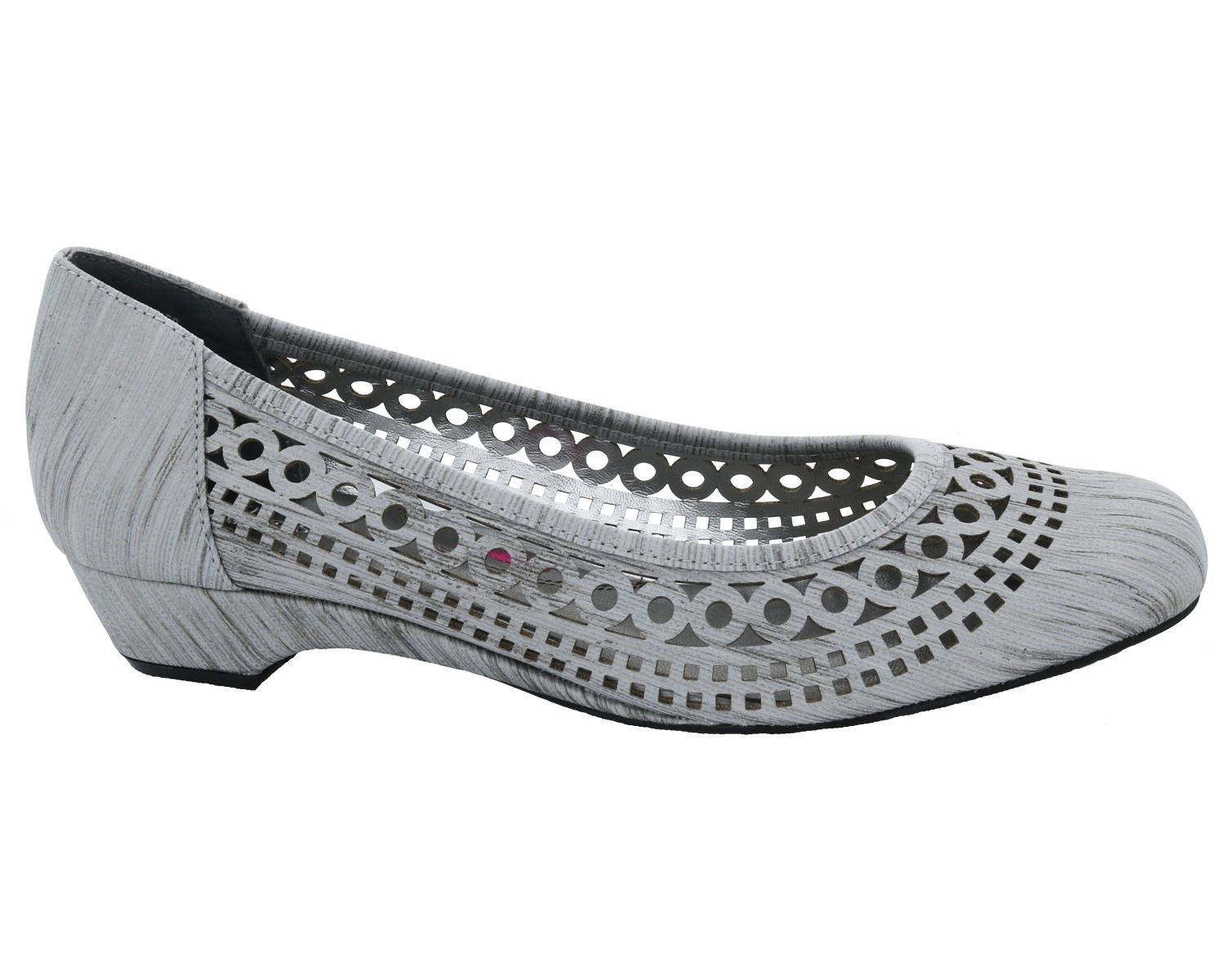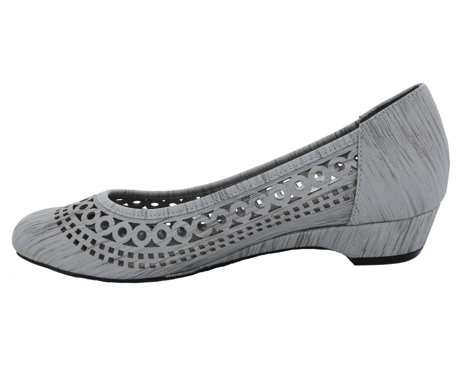 The Ros Hommerson Tina is the perfect flat to add to your wardrobe. This flattering and feminine style is made of premium quality materials and is available in black or taupe laser stripe fabric. The laser-cut details add visual flair and make these shoes breathable and comfortable. The lightly padded footbed and 1-inch heel provide maximum comfort, making these the perfect shoes to wear all day long, and the style transitions easily from day to evening.