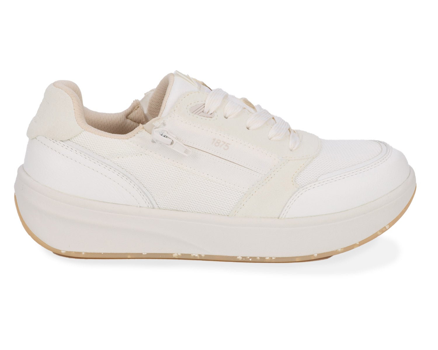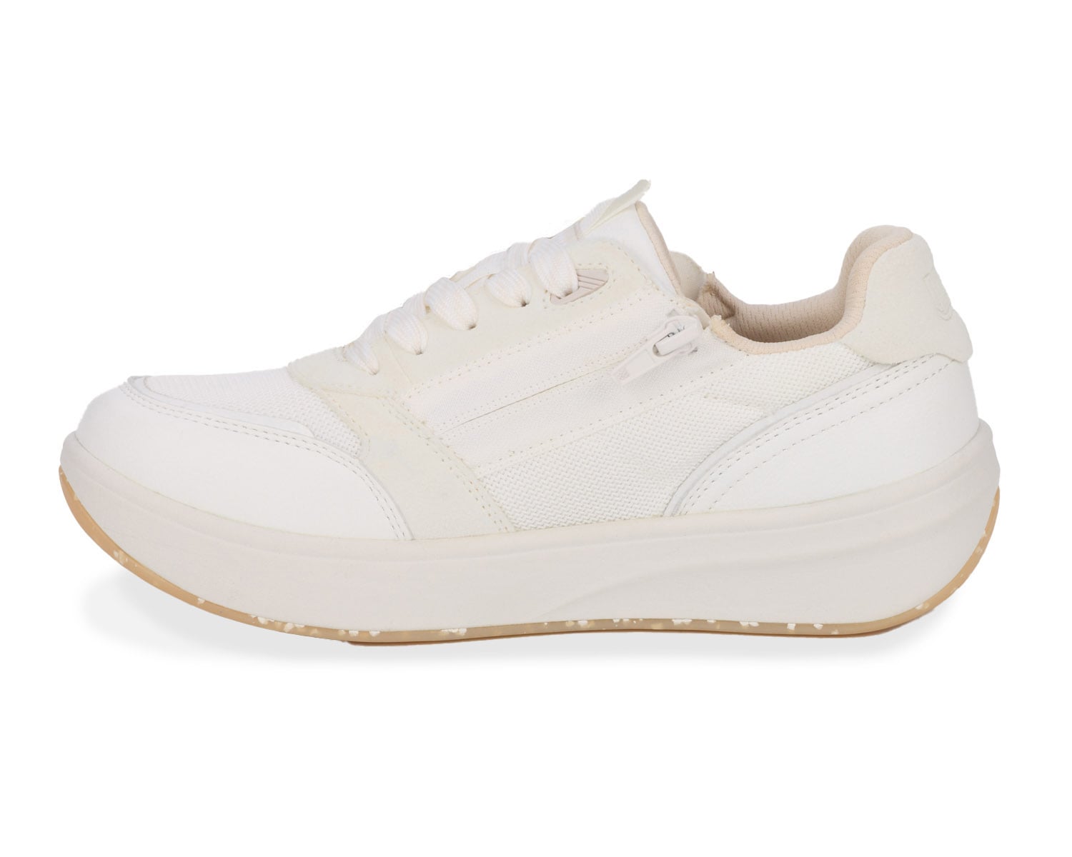 Step into style and comfort with Happy! These sneakers combine a modern design with superior support, making them perfect for all-day wear. Featuring functional laces for a secure, adjustable fit and side zippers for easy on-and-off convenience, these sneakers are as practical as they are fashionable. Complete with two removable insoles, Happy includes the proprietary Walk Right Technology Insole, for added and double depth. Happy has added depth hidden in the midsole, giving it a contemporary silhouette. The built-in orthopedic benefits include a non-slip rocker bottom that helps reduce foot fatigue and promotes proper alignment. Perfect for active lifestyles, these sneakers are a must-have for women who value both form and function.